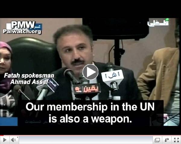 "Our membership in the UN is also a weapon. And that's an important card. It's a weapon that's in our pocket. I didn't use it on day one. I didn't say, as soon as I got membership in the UN, that I want to go to the International Criminal Court - no. We've been waving it around for two years now: We've obtained the release of the prisoners, we blackmailed [Israel], that is, in quotation marks, and we've taken important positions because we have a card that we're waving around."
